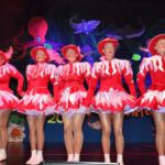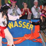 Schon der Auftakt war furios: Die Nachwuchsgarde legte einen rasanten Gardetanz aufs Parkett, viele weitere tolle Tanznummern folgten. Die HappyKids tauchten als goldige Meeresbewohner auf, die nicht mal ein überdimensionaler Hai erschrecken kann. Die Stammgarde legte mit fünf neuen Nachwuchstänzerinnen einen rasanten Tanz auf die Bühne, und die Showtanz-Formation „Just for fun“ eroberte als „Matrosen auf Landgang“ die Publikumsherzen. „Pur Fantasy“ tanzte sich in ausgefeilter Choreografie durch das Land der Phantasie, zum letzten Mal wohl mit „Urgestein“ Kessy Weippert, wie Grafe ankündigte. Und im RKK-Showtanz zeigte die Garde einmal mehr – diesmal als Wahrsagerinnen und erneut mit männlicher Unterstützung – dass sie Rhythmus im Blut haben. Für Lacher sorgten wie immer die putzigen Männerballett-Mäuse, die diesmal als Muppets die Puppen tanzen ließen.